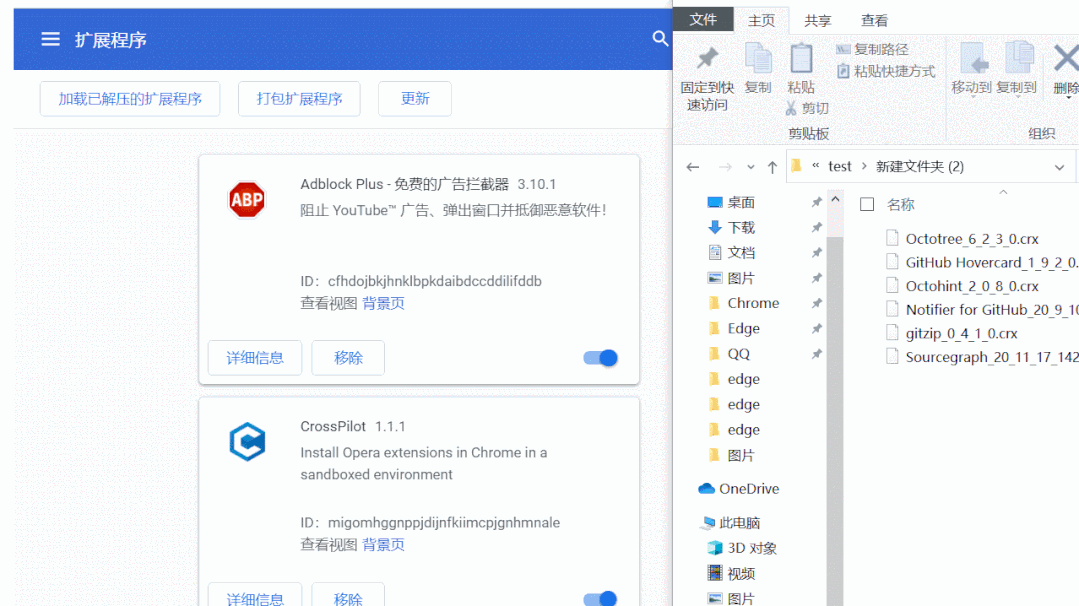 拖拽下载好的 .crx 扩展进去就完成了安装