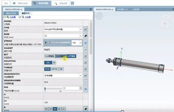 👉详细的参数查看:提供元件的详细参数信息,包括属性名称、精度类型、材质、表面处理、硬度要求等,帮助设计师准确选择符合设计要求的气动元件。