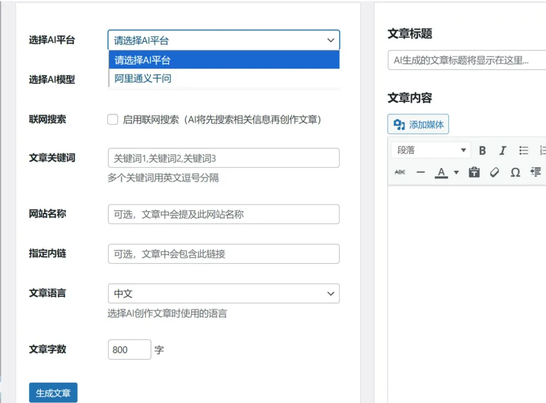 WordPress 小半WP AI文章创作是一款可以关键词,自动生成文章的Wordpress插件。