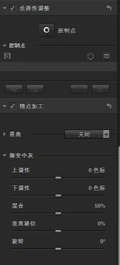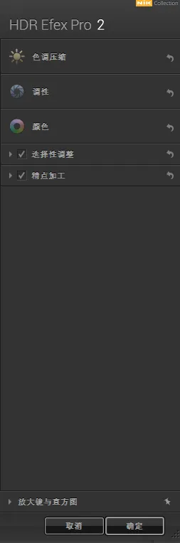 右侧功能区主要分为色调压缩、调性、颜色、选择性调整、精点加工等等几个板块。色调压缩可以理解为控制图片整体的明暗,暗调以及亮调的控制键。