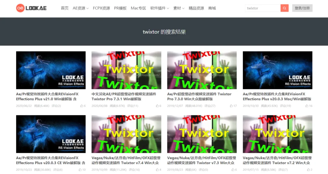 我们在大众脸网上,搜索:twixtor,就能找到它的最新版本下载链接,大家自行去下载即可。