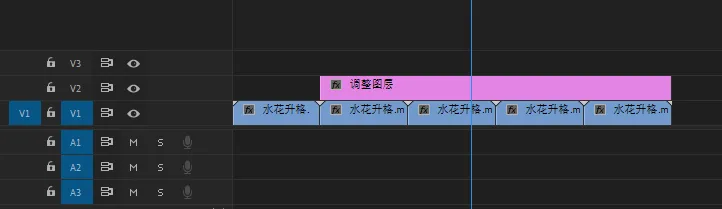 新建一个调整图层,放在第二个轨道,使其和后面四个素材的时间等长。
