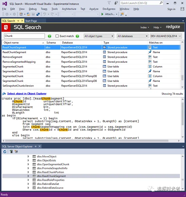 加速SQL Server数据库开发,通过在Visual Studio中快速查找SQL对象。可快速搜索数据库中的SQL片段,并轻松导航到这些对象。这可以节省时间,提高团队的生产力,让您可以回到手头的任务