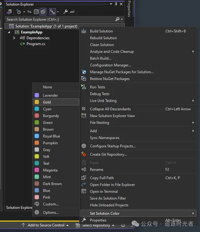 Solution Colors允许将颜色与解决方案关联起来,并在 Visual Studio 的不同位置显示。灵感来自 VS Code 的 Peacock 扩展。