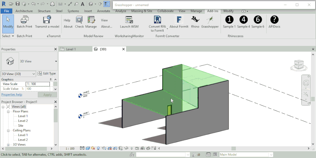 Rhino.inside就是连接Grasshopper和Revit的桥梁,相当于将GH放入到Revit的缓存里,那么GH中创建的几何体可以直接转化为Revit模型,并可以联动GH进行参数控制,很大程度上提高了Revit的曲面造型能力以及数据处理能力。