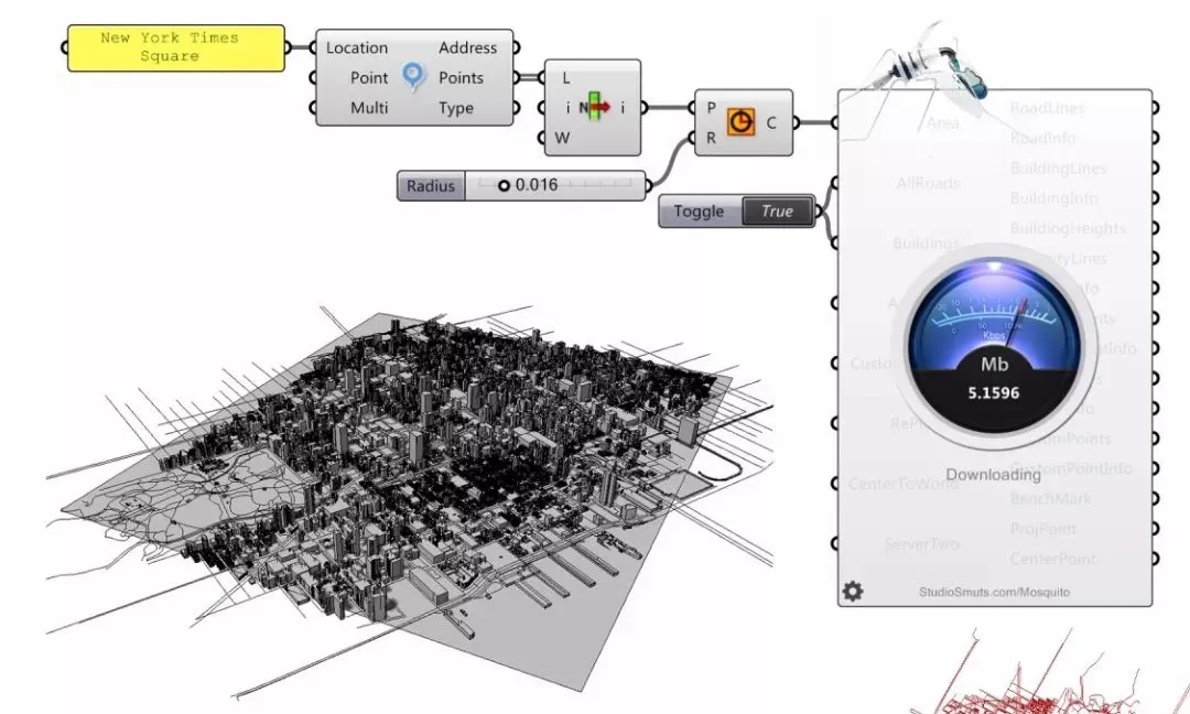可以提取建筑、道路、地图数据、图片、媒体等信息,该插件中的Flow运算器常用于模拟雨水径流。