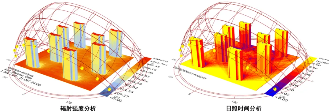 这两个插件可将气象数据加工为可视化的环境分析图形,并完成对日照、环境、人体舒适度等因素的可视化分析。Ladybug主要应用于前期基础性的环境分析,Honeybee则更偏向于物理性能与热工分析。