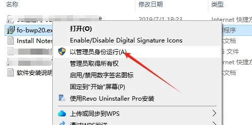 鼠标右键以管理员身份运行fo-bwp20.exe