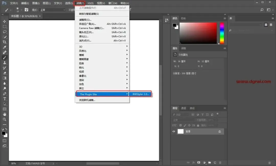 打开PS软件,新建文档,点击滤镜-The Plugin site -BWStyler 2.0…