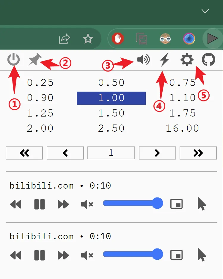 ②固定按钮,点亮之后,当前设置的倍速播放仅对这个选项卡生效。否则设置的速率对整个浏览器生效。