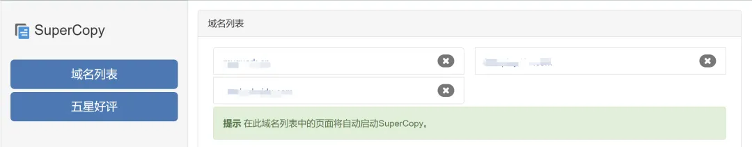 SuperCopy 具有记忆和联想功能,破解后的网站能够记住,下次不需要再手动启动,并且相关的网页自动能够生效。