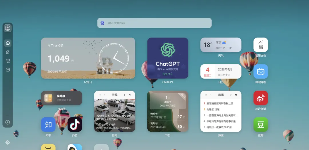 支持的小工具很丰富,有天气、日历、热搜榜、备忘录、倒计时、每日诗词、股市、每日英语等等,只要在空白地方右键一下,然后点击“添加图标”选项,在弹出的新页面选择小组件添加即可。