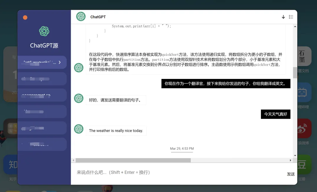 响应速度非常快,而且是支持上下文的,可以调教它,为你完成很多工作!