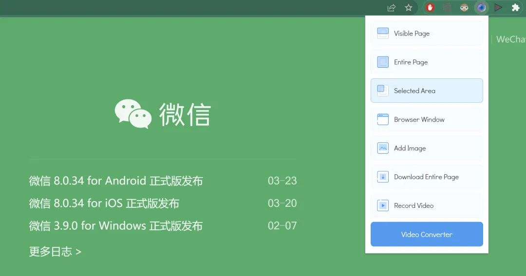 Scrnli 支持多种浏览器屏幕截图,有可见页面、整个页面、选中区域,不仅如此还可以截取整个电脑屏幕和下载整个页面。