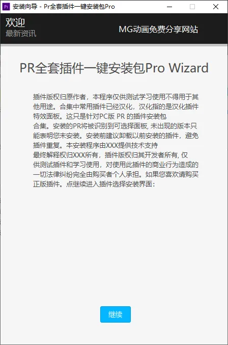 按需选择自己需要的就好,因为安装插件过多的话,就会导致PR变得臃肿;接下来无视注册码,直接点击继续,就可以完成安装了!