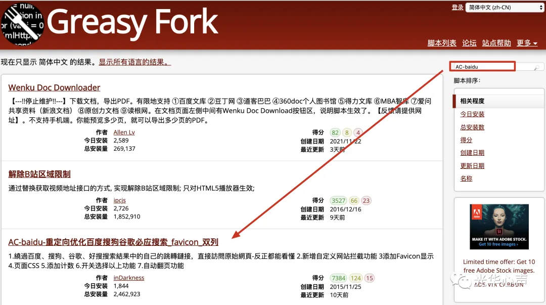 以AC-baidu为例,原名太长记不住(AC-baidu:重定向优化百度搜狗谷歌搜索_去广告_favicon_双列)