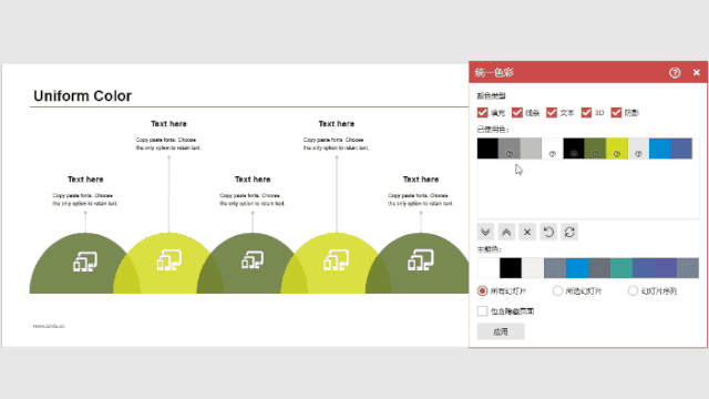 但是使用islide完全不需要有这些顾虑,你可以直接插入喜欢的页面,系统自动匹配字体、配色等,永远保持风格一致。