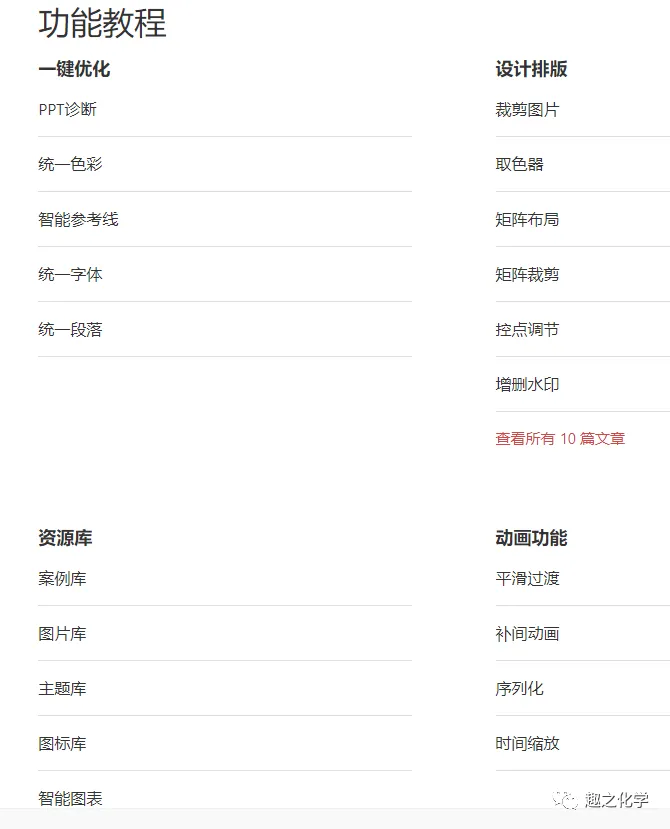 有没有教程呀,就算有教程学习难度大么?小编亲测,比学ppt简单上百倍!小编为朋友们整理好了官网动图/视频教程,教程目录见下图。