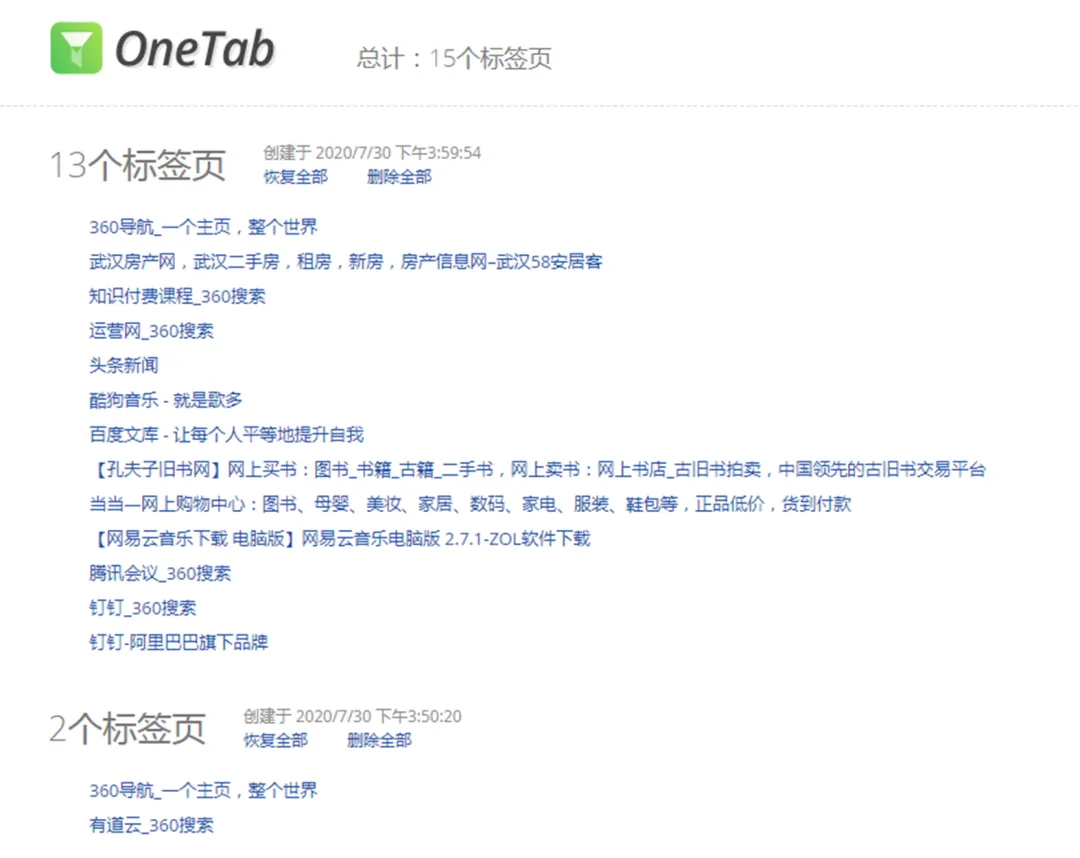 找不到需要的网页?打开 Onetab,就能清清楚楚的看到啦,直接点击文字进入即可。