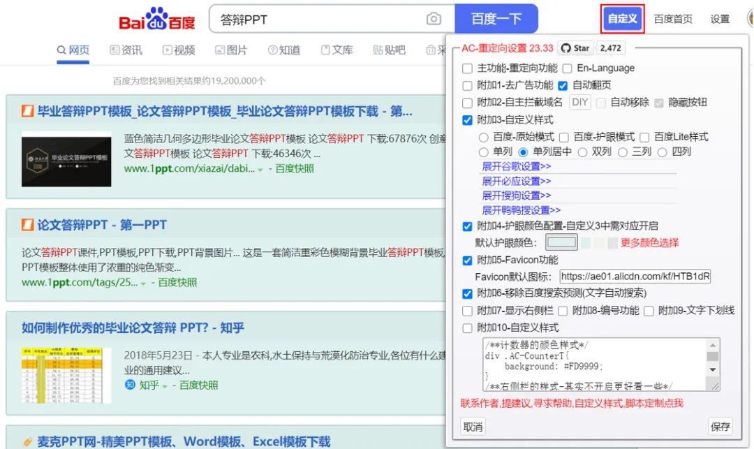 「百度优化」支持百度、搜狗、必应、好搜、谷歌搜索,不仅能优化搜索内容,还能优化部分广告,清洁页面~