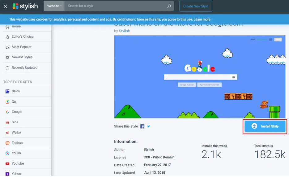 如果有喜欢的样式,进入详情页,直接点击「Install Style」就好~