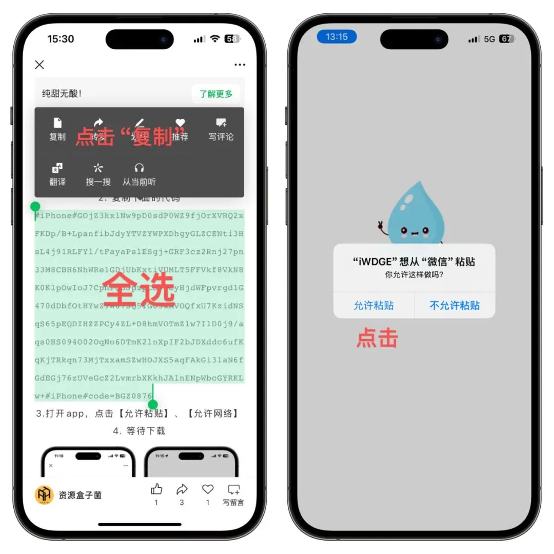 下载后,先不要打开app,复制下面的代码