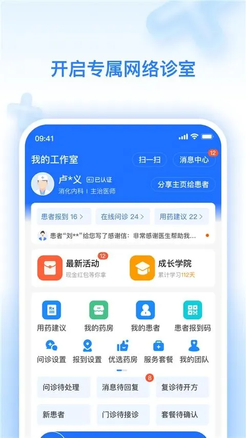患教+服务双在线,行医体验拉满软件里藏着患教中心版块,医生能在线发科普文章、视频,给患者塞满疾病预防知识,帮大家避开常见病困扰;从患者管理到在线接诊,从二维码建关系到科普输出,全程丝滑不卡顿。咱就是说,这app把“医生行医数字化”整得明明白白,行医宝子闭眼冲就完事儿,实用度YYDS!
