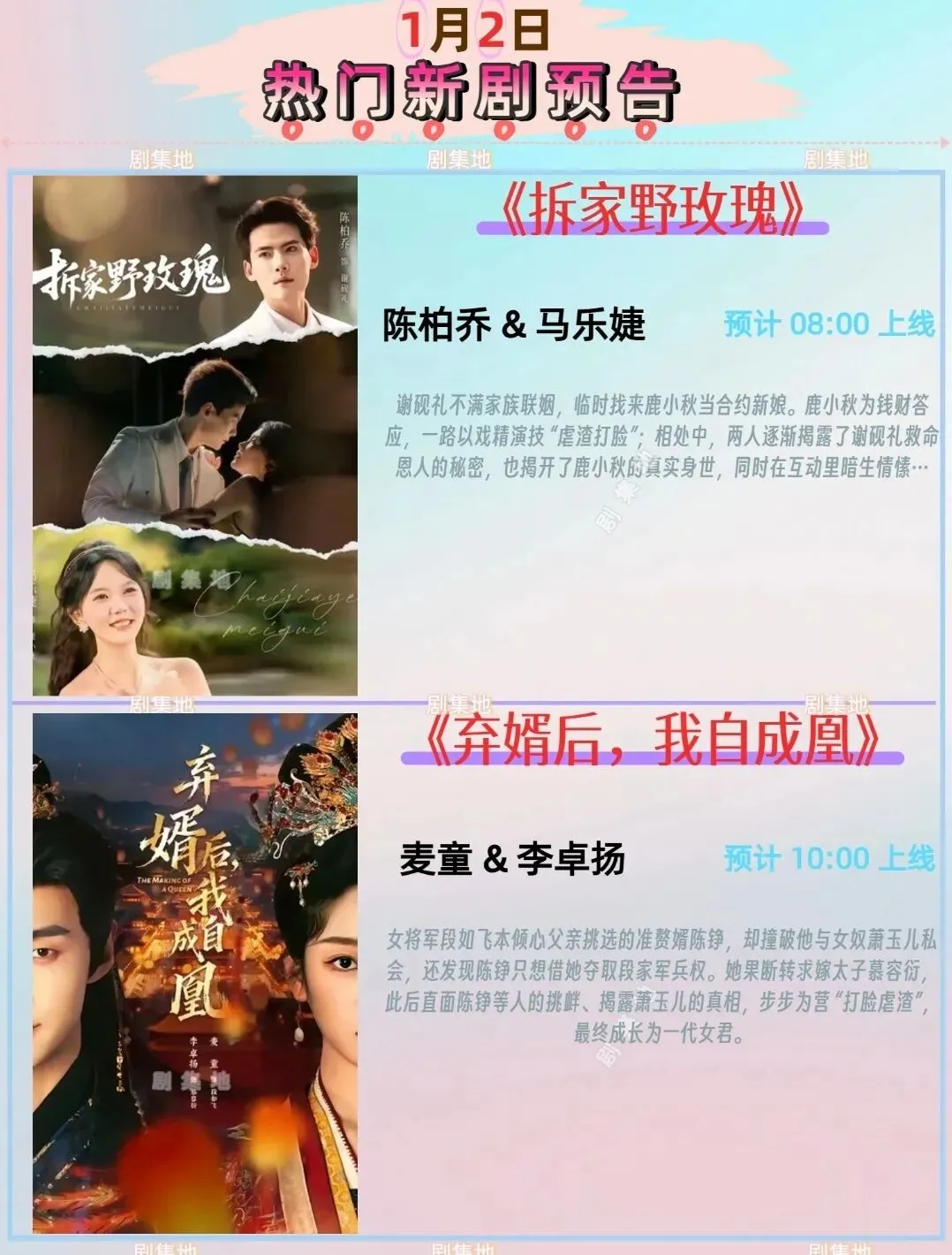 4. 《拆家野玫瑰》(陈柏乔&马乐婕):8:00上线,戏精女主打脸虐渣