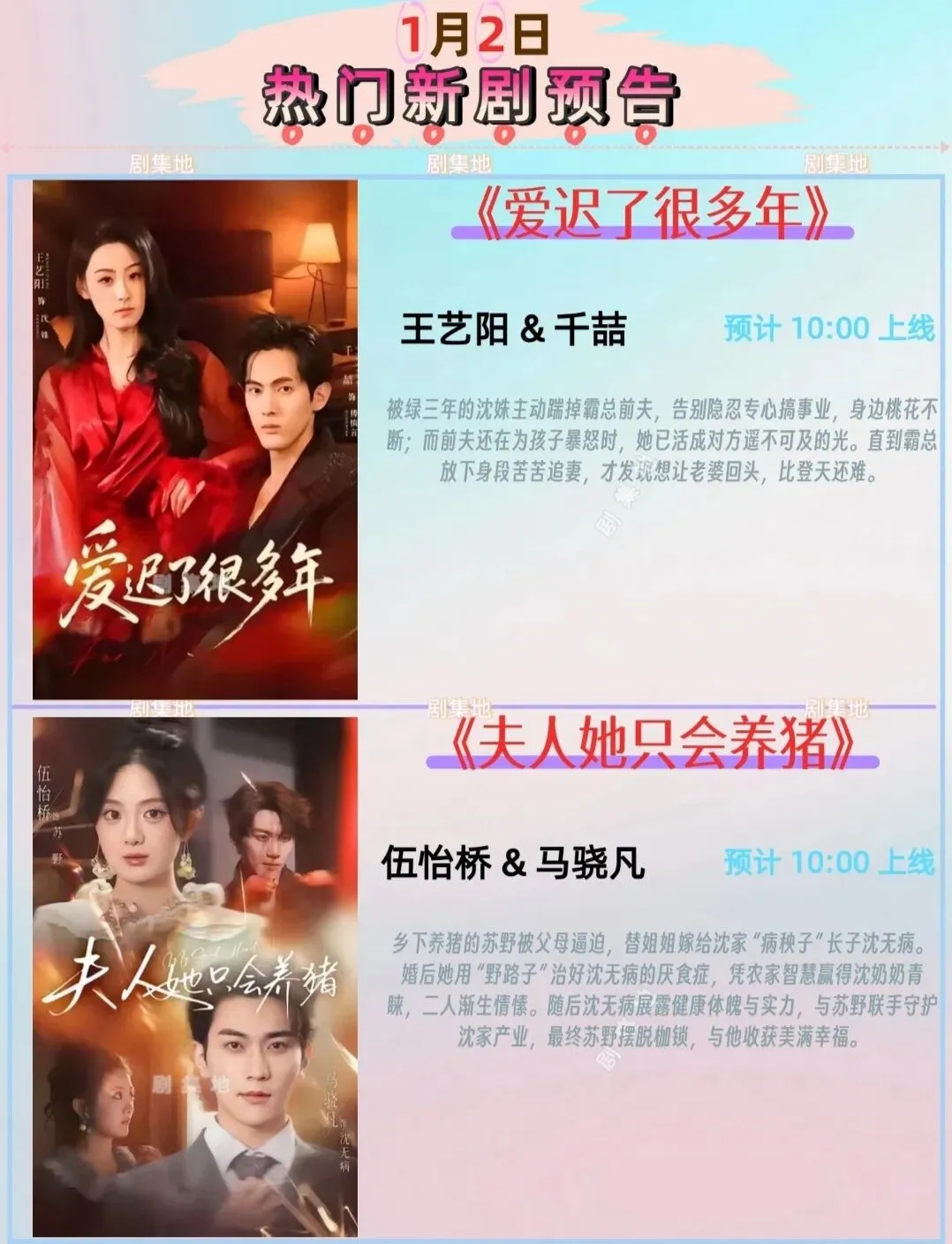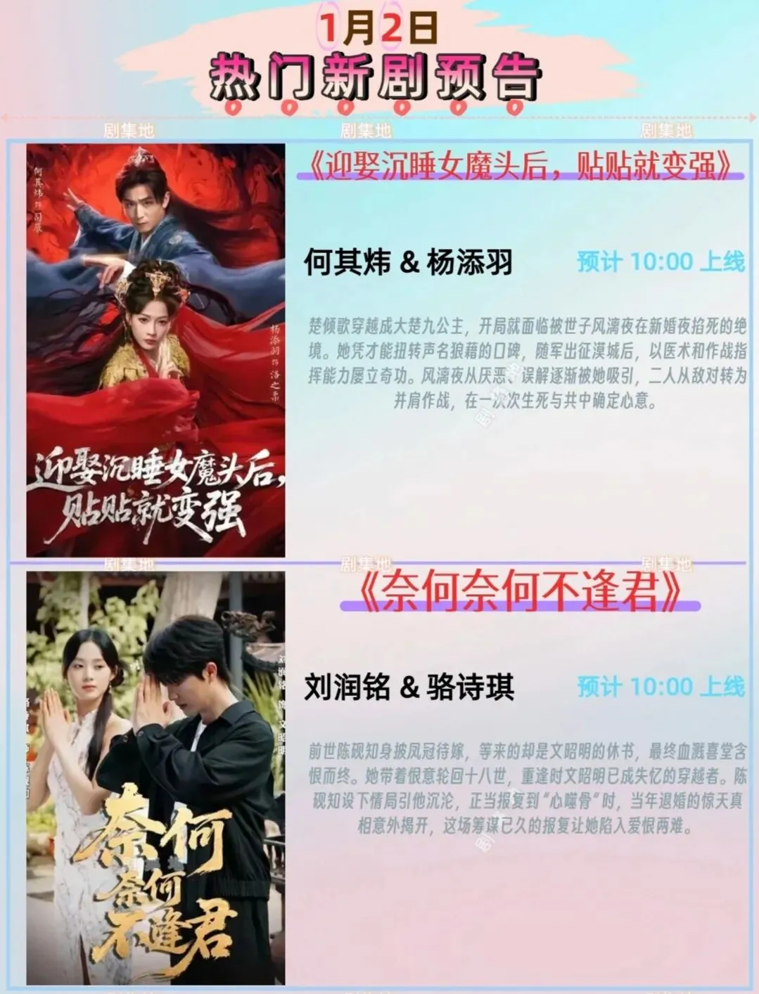 1月2日上线,成年人先婚后爱,无狗血误会,细节甜度拉满,预约破百万,开年甜宠王炸。