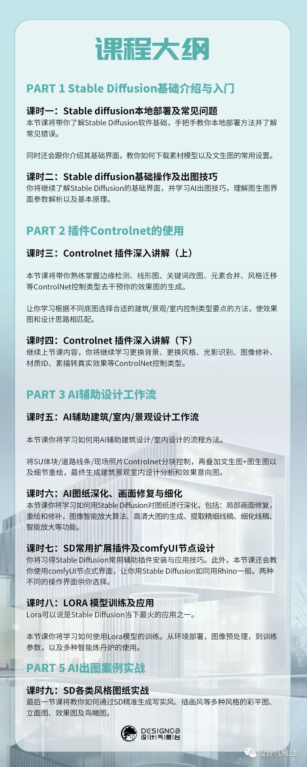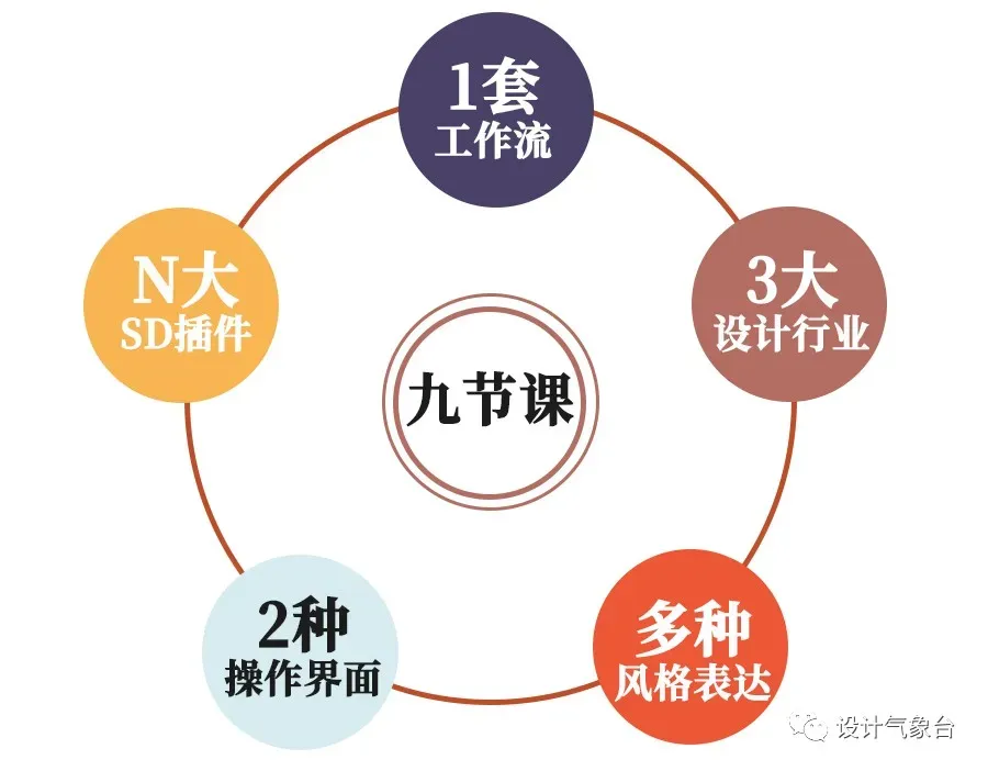 与我们第一期AI课程不同,本次课程一共九节课,深耕Stable Diffusion及相关插件。
