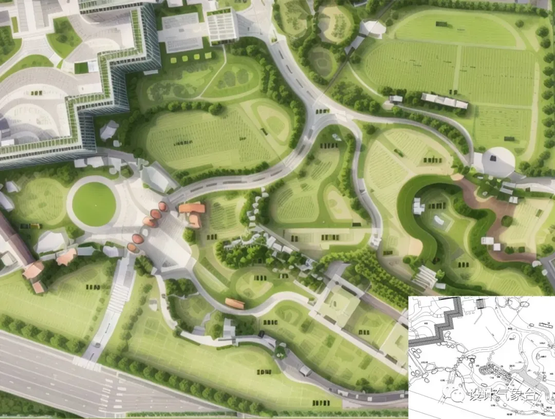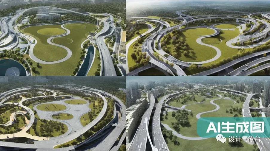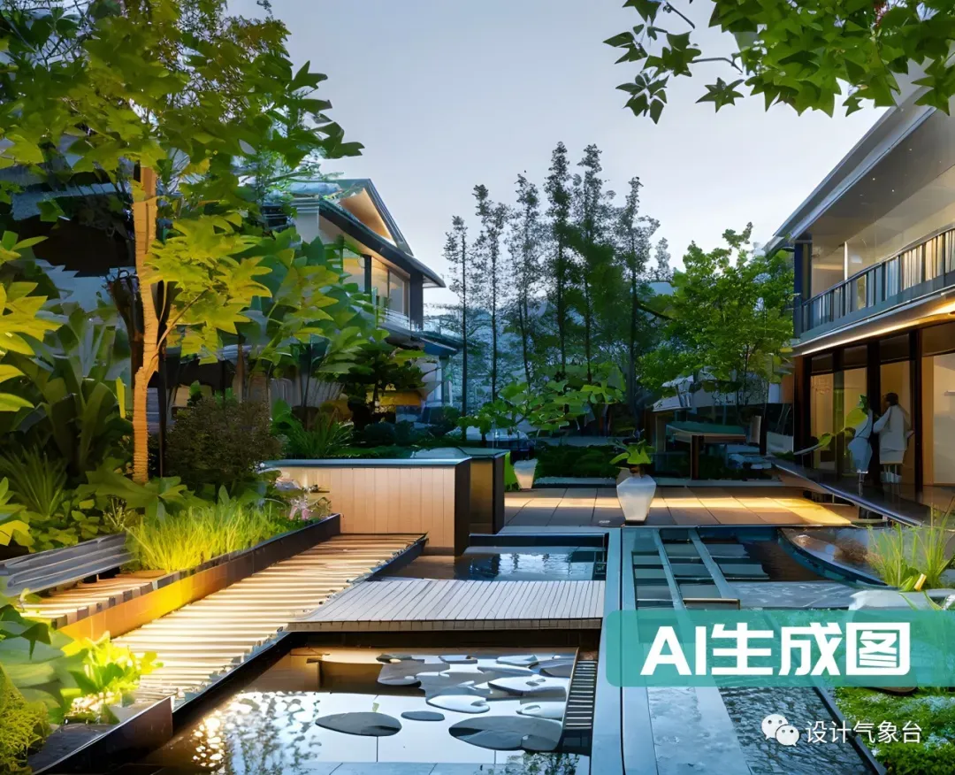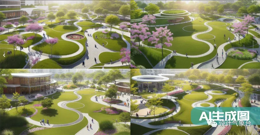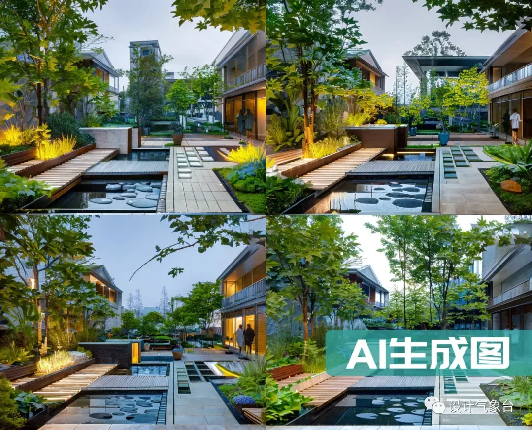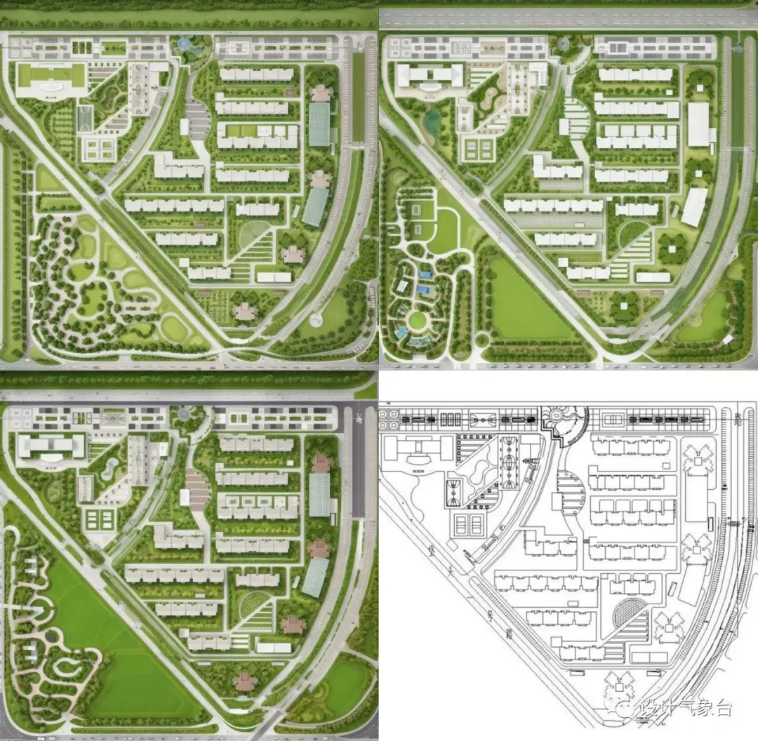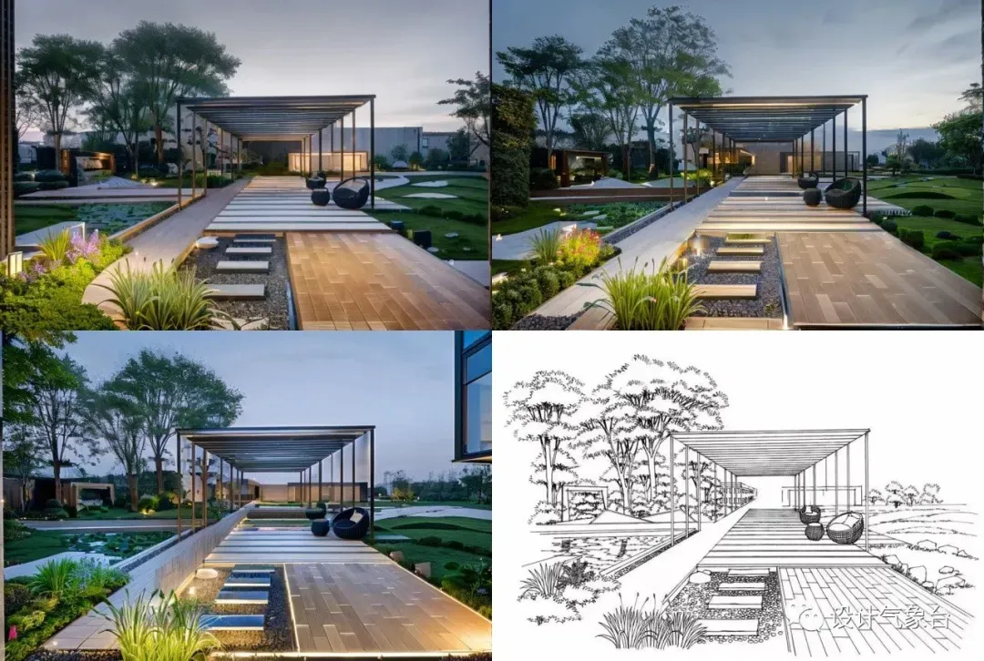 ▲ 景观线稿图AI生成对应方案效果图(课程案例)