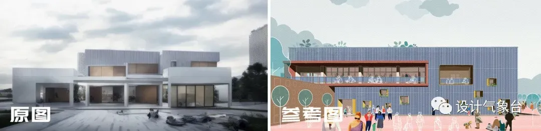 ▲ 建筑SU模型图AI生成对应方案效果图(课程案例)