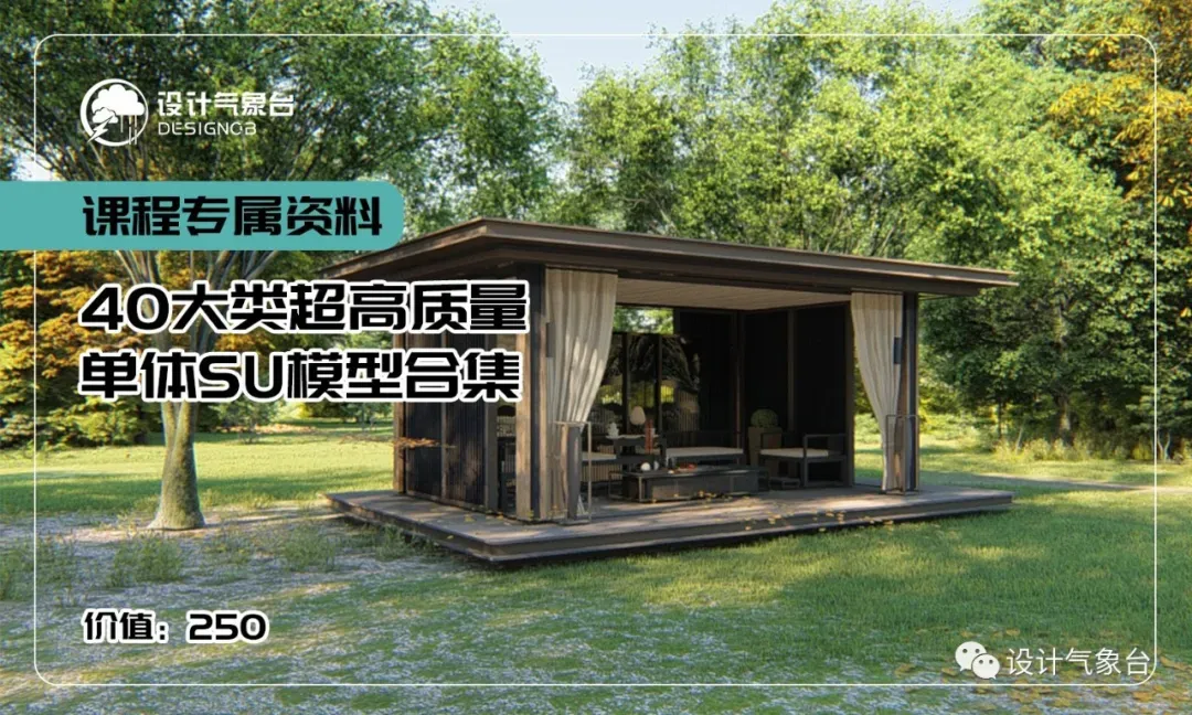 购买本次课程,还附赠SD安装包、各大常用插件以及10大类建筑项目图纸&国内顶级效果图!