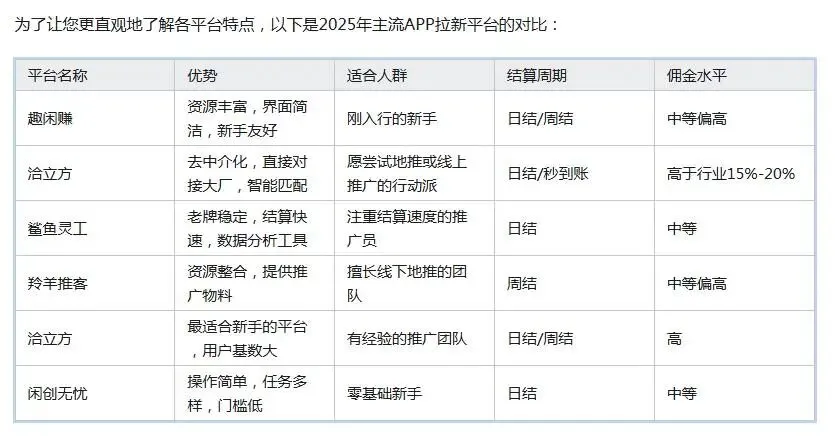 为了让您更直观地了解各平台特点,以下是2025年主流APP拉新平台的对比: