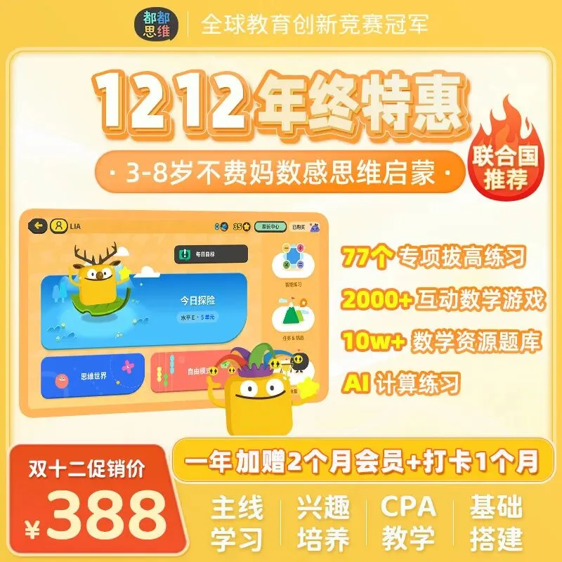🤩都都思维给你一站式解决 ✅游戏互动形式,没有孩子不喜欢 ✅国际公认先进有效的CPA教学法,没有孩子学不会 ✅心流式教育,培养孩子自主学习习惯,完全不用妈妈教 ✅覆盖八大数学基础知识,老人带娃不误进度,带娃高效又轻松