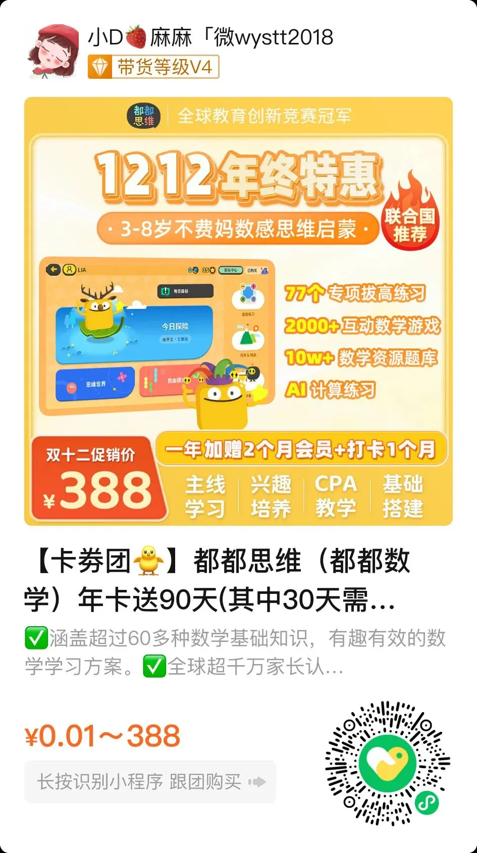 ️💝购买年卡后,都能得到啥?️ 🈶2000多个互动游戏 🈶10万+题库 🈶AI智能调级个性练习 🈶思维专项训练模块 🈶八个等级覆盖从启蒙到小学三年级的数学知识 🚨这么强、这么靠谱、被海淀妈妈强推的数学启蒙天花板,值得尽快给孩子用上️!