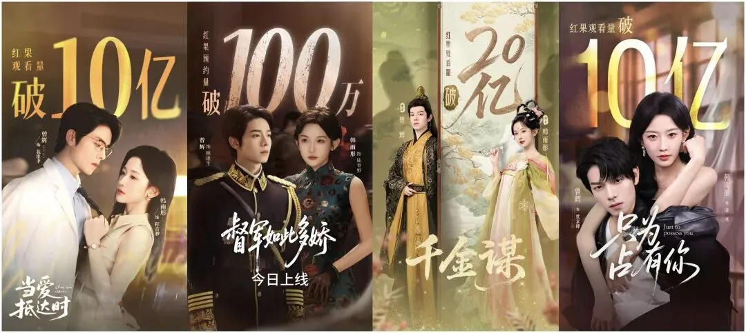 除上述13部作品外,他们两人各自主演的作品也都有很出色的爆款,比如韩雨彤的《老公请和我恋爱吧》《月光绣》《邱秘书的婚事》,曾辉的《太奶系列》。