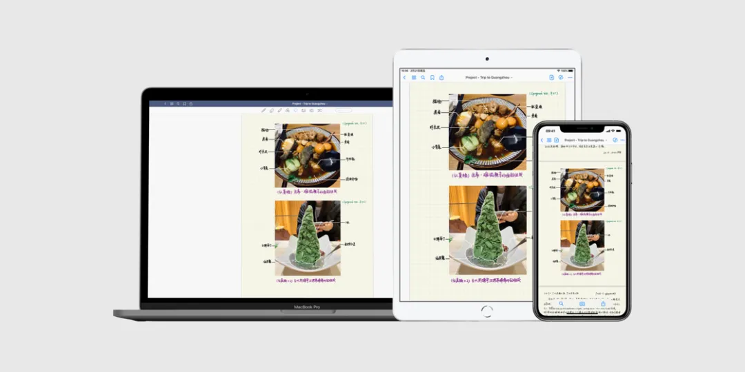 而 Universal App 和 Project Catalyst 则将 GoodNotes 同样的 app 体验带给了 iPhone、iPod touch 和 Mac。由于 Mac 和 iPhone 不支持 Apple Pencil,所以我主要在 iPhone 上快速查看笔记、在 Mac 上浏览文档并且做一些简单的荧光笔标注。所有笔记的修改都可以通过 iCloud 实时同步。这大概就是 iOS 的「合」。