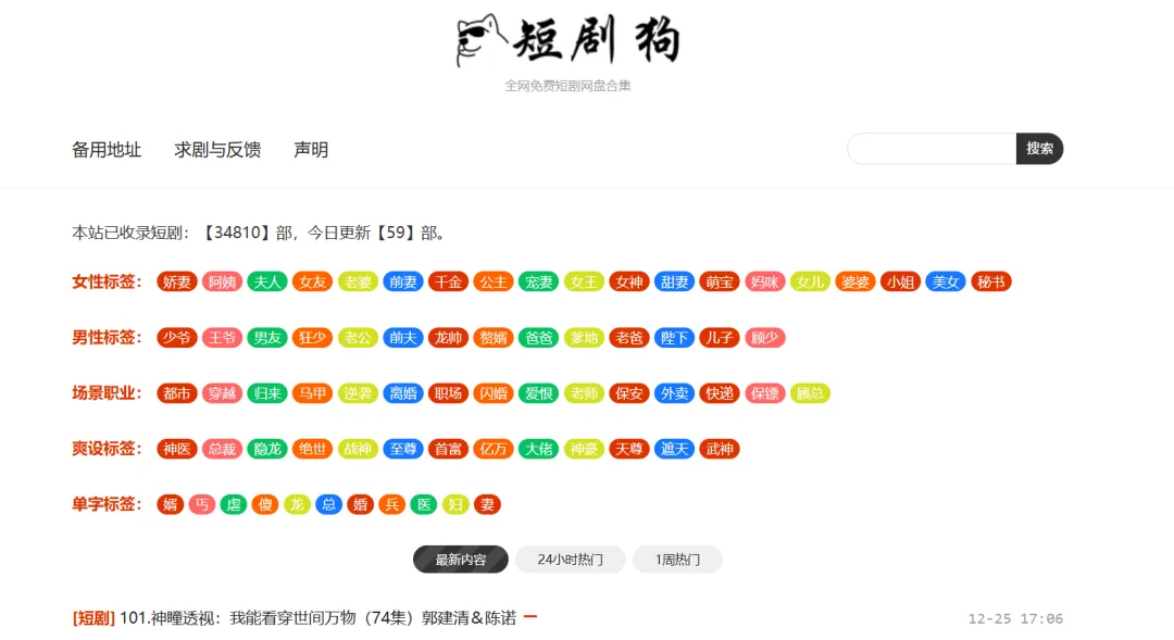 网址:https://duanjugou.top简介:全网最新短剧收集与分享,免费,资源多可搜索,但是需要保存到夸克网盘才能观看