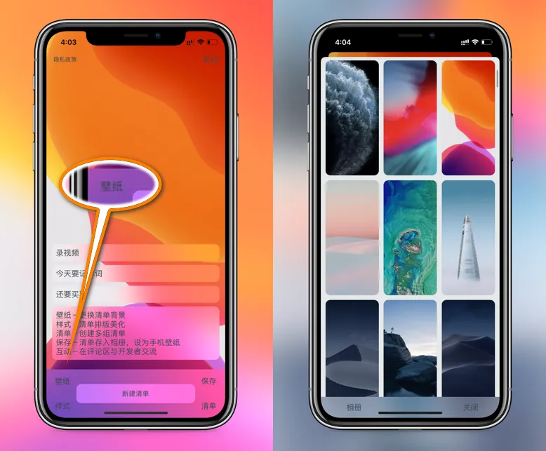 点击清单,可以创建清单组,这样可以快速选择自己创建的清单组添加到壁纸。最后保存壁纸,然后设置为锁屏或者桌面就可以啦。