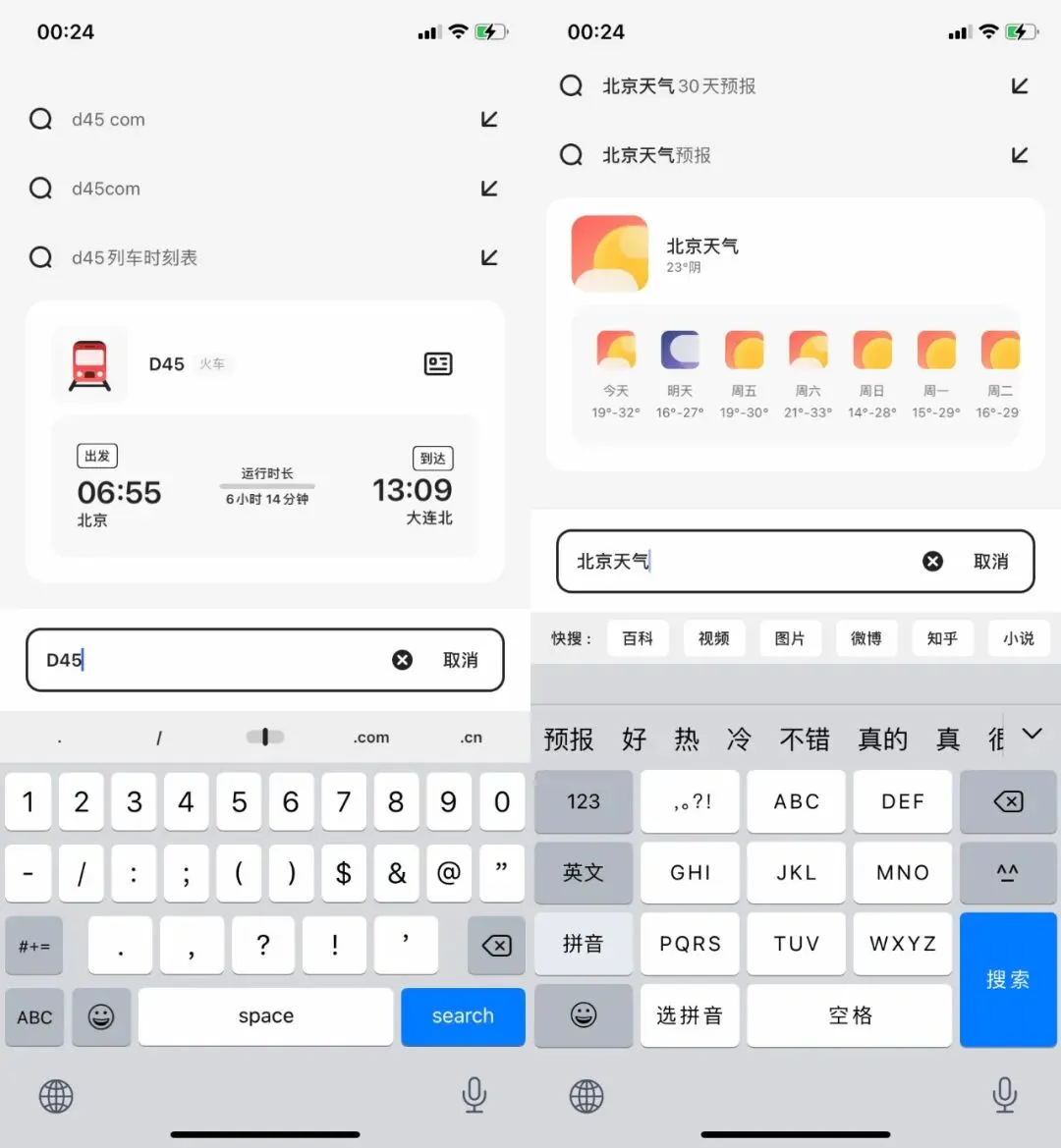 像是搜个火车车次、天气等等,可以迅速的展示准确答案。