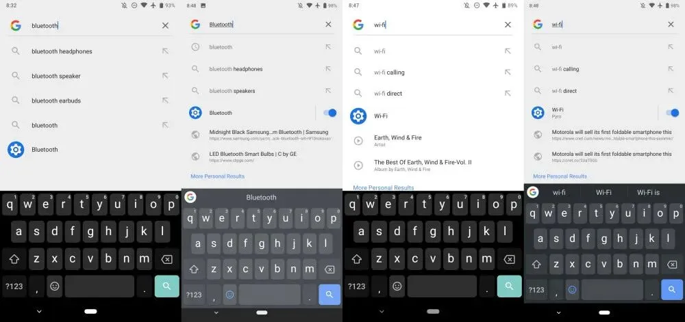 比如,在谷歌搜索栏中输入「蓝牙」或「Wi-Fi」,即可出现开关该功能的快捷开关。