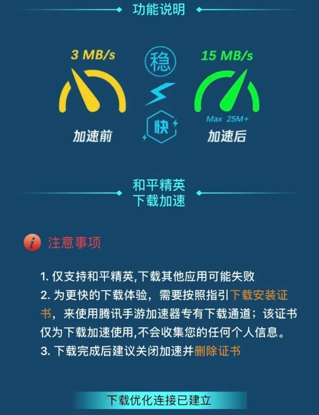 ☆加速成功后再进入会显示“下载优化连接已建立”:
