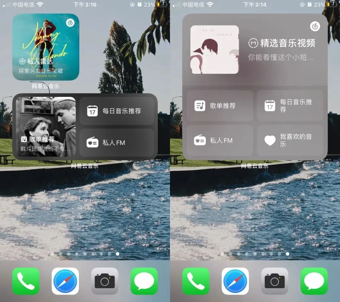 最大号那个网易云音乐组件,是在上面功能基础上,再加个精选音乐视频。