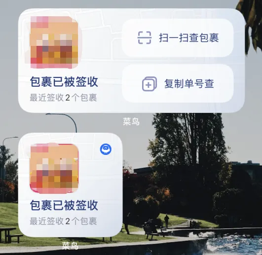它有一大一小两个选择,小的可以实时展现包裹运输进度,大的还加个查询功能。