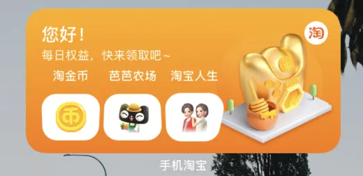 这跟支付宝养鸡道理类似,平时每天喜欢去收淘金币、更新淘宝人生的朋友会喜欢这个小组件,从桌面可以一键直达。