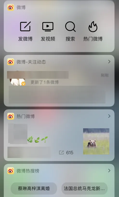 微博 App 也像某宝那样,一口气给好几个不同的小组件选项。