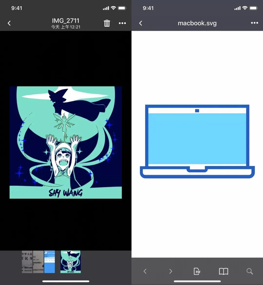 浏览图片是我们日常工作生活中最高频的操作之一,而 Documents 不仅支持 PNG、JPG、GIF 等常用格式,还可以打开 SVG 等专业图像格式,甚至可以将图像转换为 PDF 格式(需要安装 PDF Converter),是设计师们的好帮手。