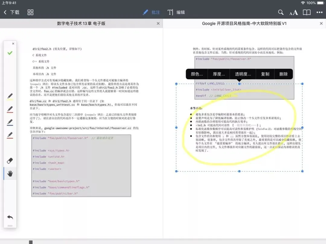 除了阅读文档外,Documents 的另一项绝活是 PDF 批注。Documents 为你提供了画笔、放大镜、文本、形状、图章、高亮、下划线、删除线等数种标注工具,如果你同时安装了 Readdle 自家出品的 PDF Expert,还能解锁 PDF 编辑功能,文字图片随心插入。