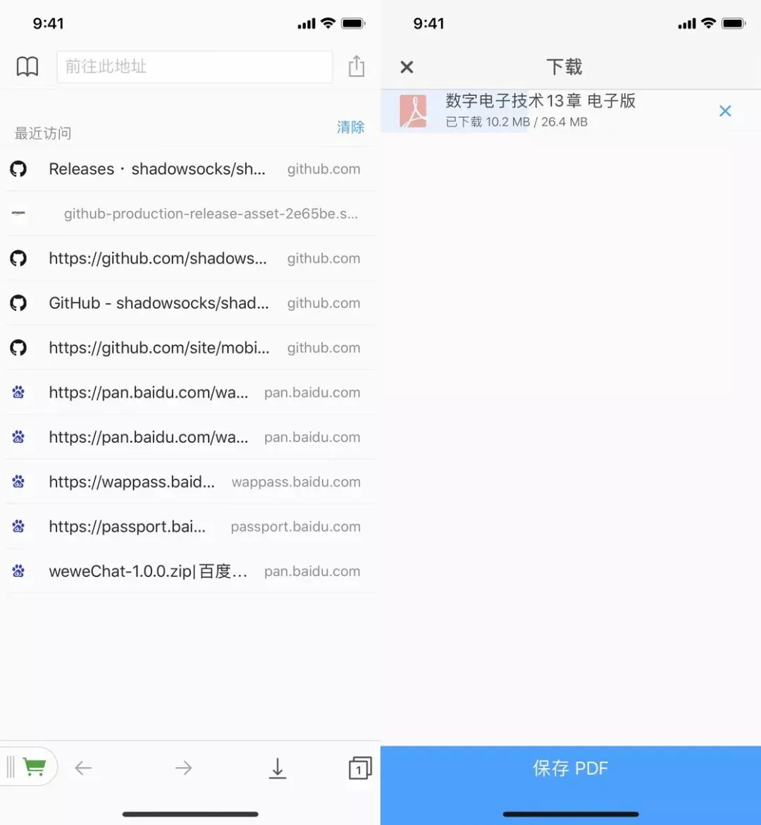 到了 iOS 13,苹果终于给 Safari 加上了下载功能。只需要访问想要下载的链接,Safari 就会自动提示你是否要下载文件,并将其保存至 iCloud 云盘的「下载项」文件夹中,可以在其后拷贝到 Documents 使用。
